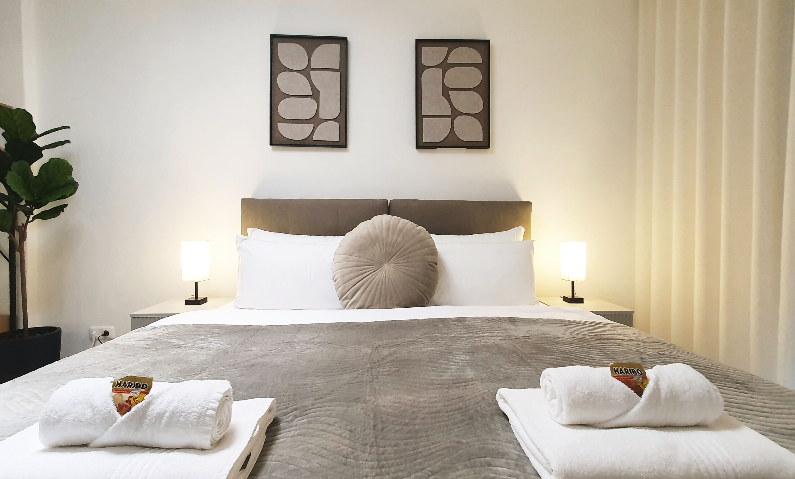 Saubere und frische Bettwäsche und Handtücher